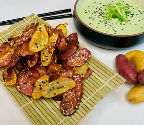 Fingerling Potato Chips with Creamy Scallion Dip Recipe