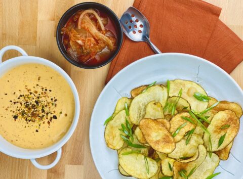 Thick-Cut Potato Chips with Kimchi Queso Recipe