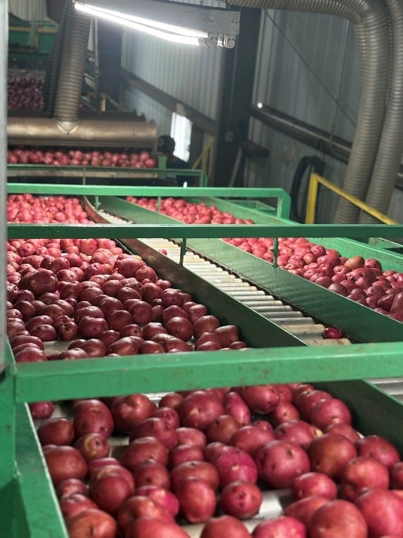 Hunter and Dawson started with 150 acres of red potatoes and “actually made some money” in their first year, Hunter said. Over the next 17 years, they steadily expanded the business. Today, they grow 400 acres of potatoes and 100 acres of onions, and operate out of a 42,000-square-foot packing facility. They’ve also raised produce like watermelons, broccoli, and cabbage.