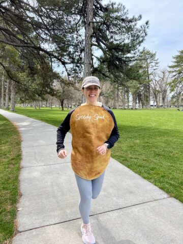 Ainsley Chapman, our second-ever Speedy Spud, ran the Salt Lake City Half Marathon on April 26 in style. The style? A custom-made potato costume showcasing the nutrient-dense spud’s potential to fuel athletic performance.