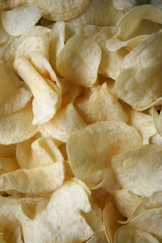Potato chips are minimally processed and typically made with three ingredients found in most homes – potatoes, vegetable oil and salt.