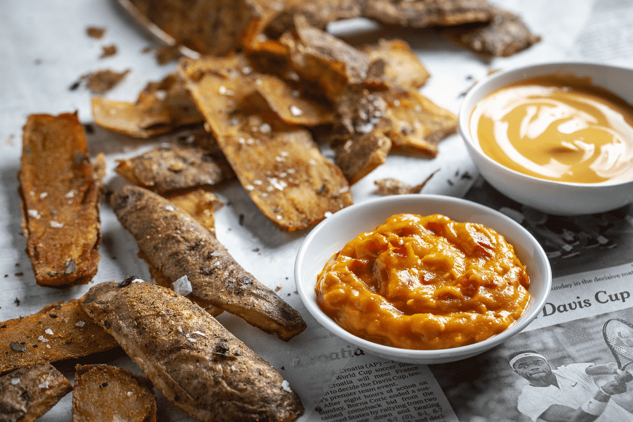 Potato Cracklins’ with Potato Pimento Cheese Dip