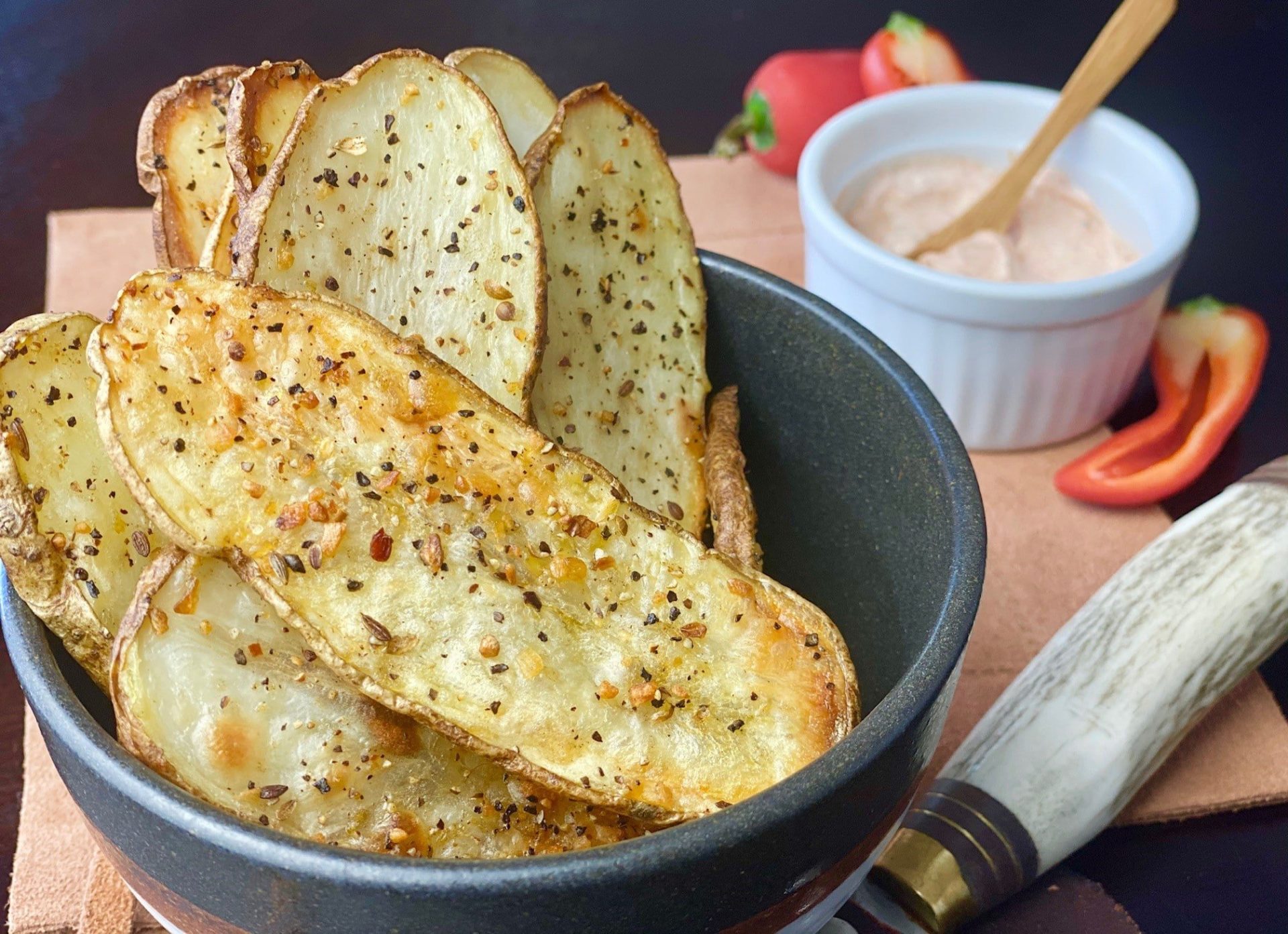 7. Remove the potatoes from the air fryer and serve with the chipotle sour cream. Enjoy!