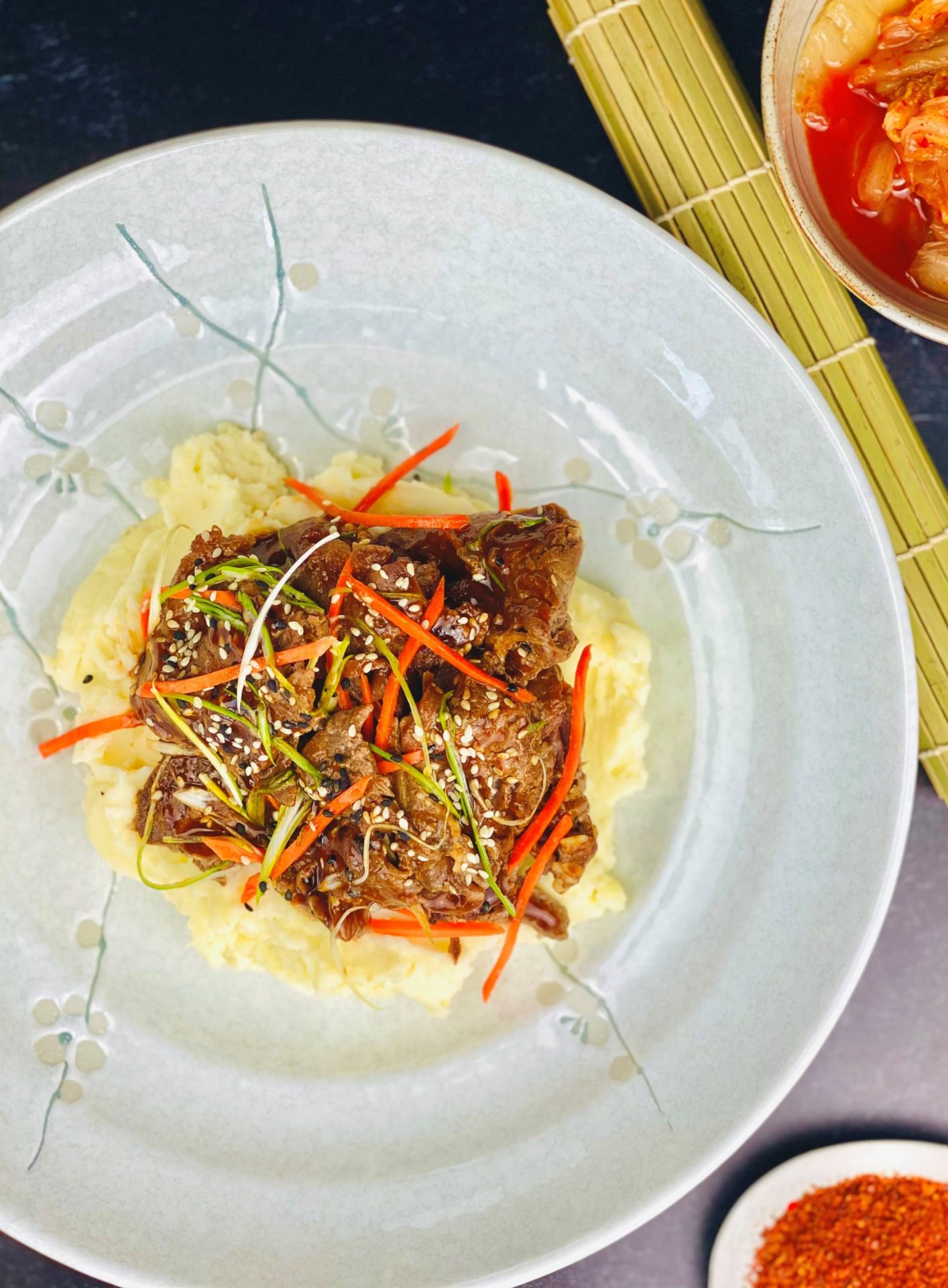 Beef Bulgogi on Korean Miso Whipped Potatoes