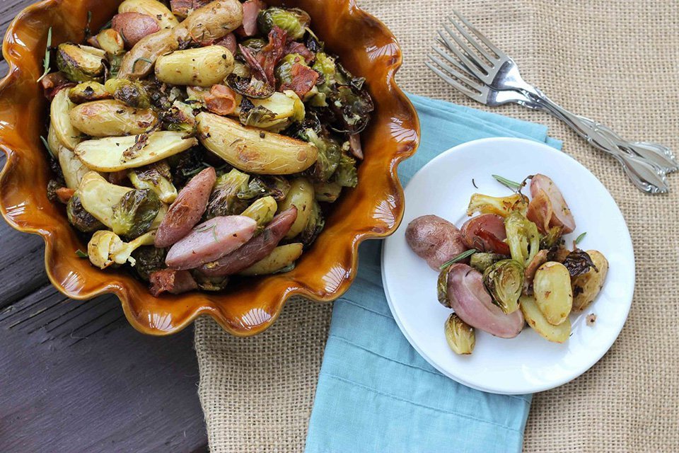 Beer Roasted Potatoes with Brussel Sprouts and Bacon