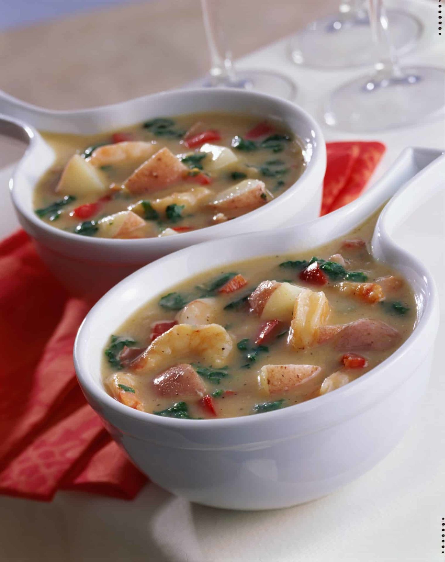 7. Add shrimp and spinach and cook for several minutes more until spinach is wilted. Makes 6 servings.