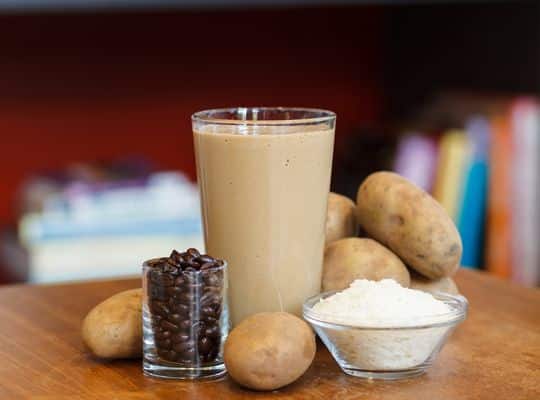 1. In a  blender combine cold brew coffee, milk, espresso powder, and potato flakes until well combined and flakes have thickened the mixture.