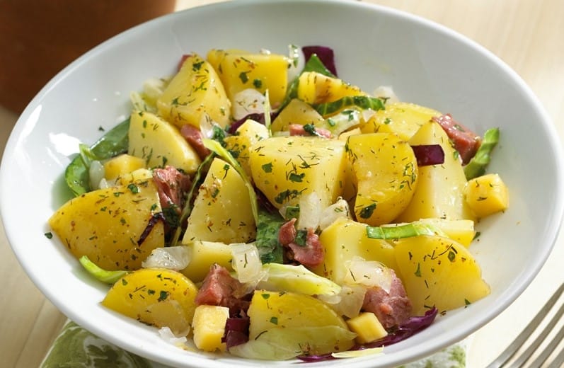 Combine classic Irish ingredients – corned beef, cabbage, Dubliner cheese and potatoes – to create a delicious Corned Beef and Cabbage Warm Potato Salad.
