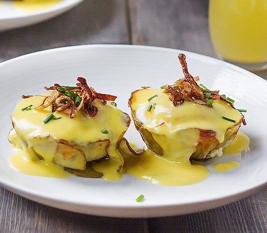 Easy Eggs Benedict with a Potatoes & Saffron Hollandaise