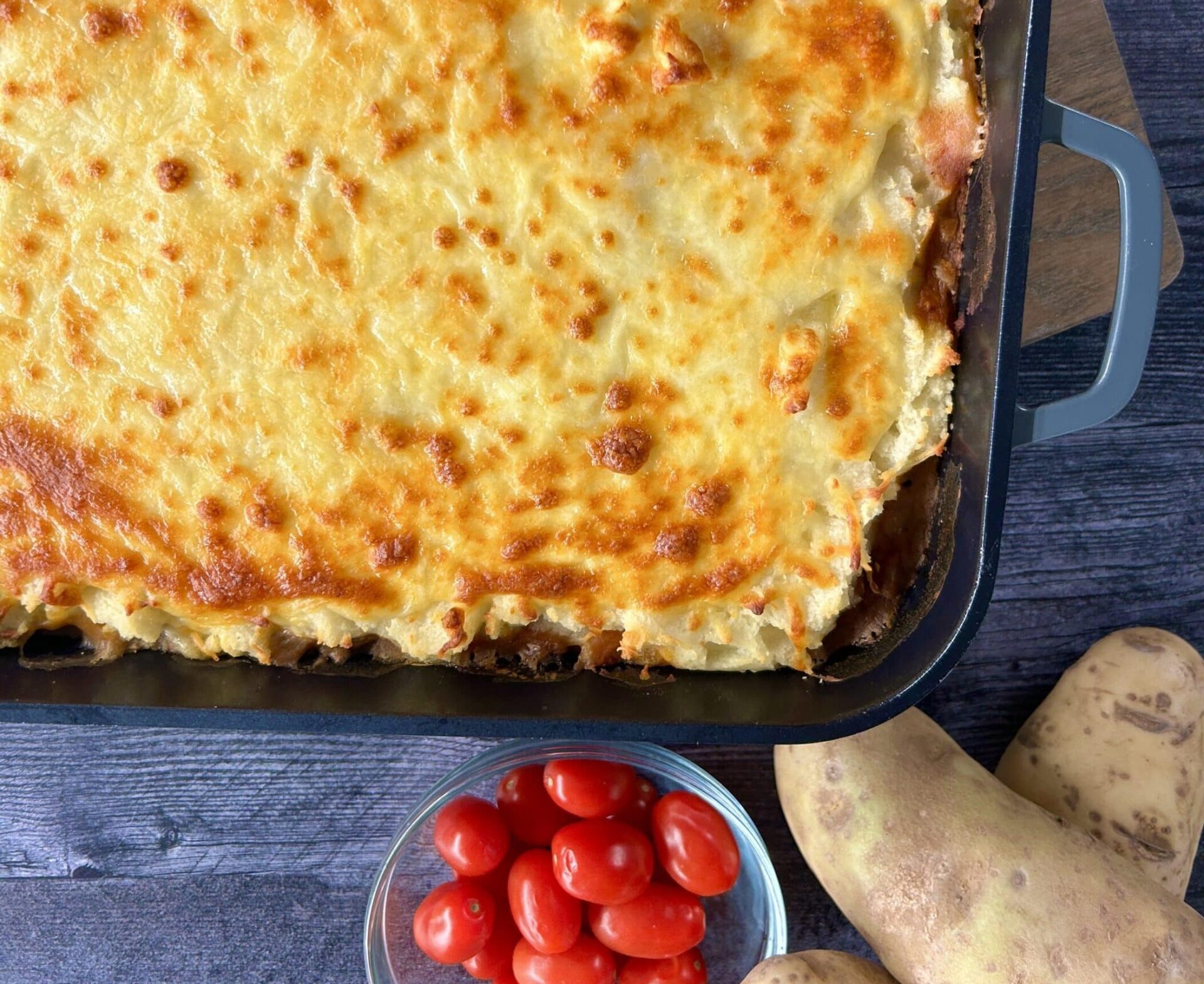 A medley of Greek vegetables topped with creamy feta-whipped mashed potatoes and bubbly mozzarella cheese. This is a great casserole for an easy, tasty side dish everyone will love!