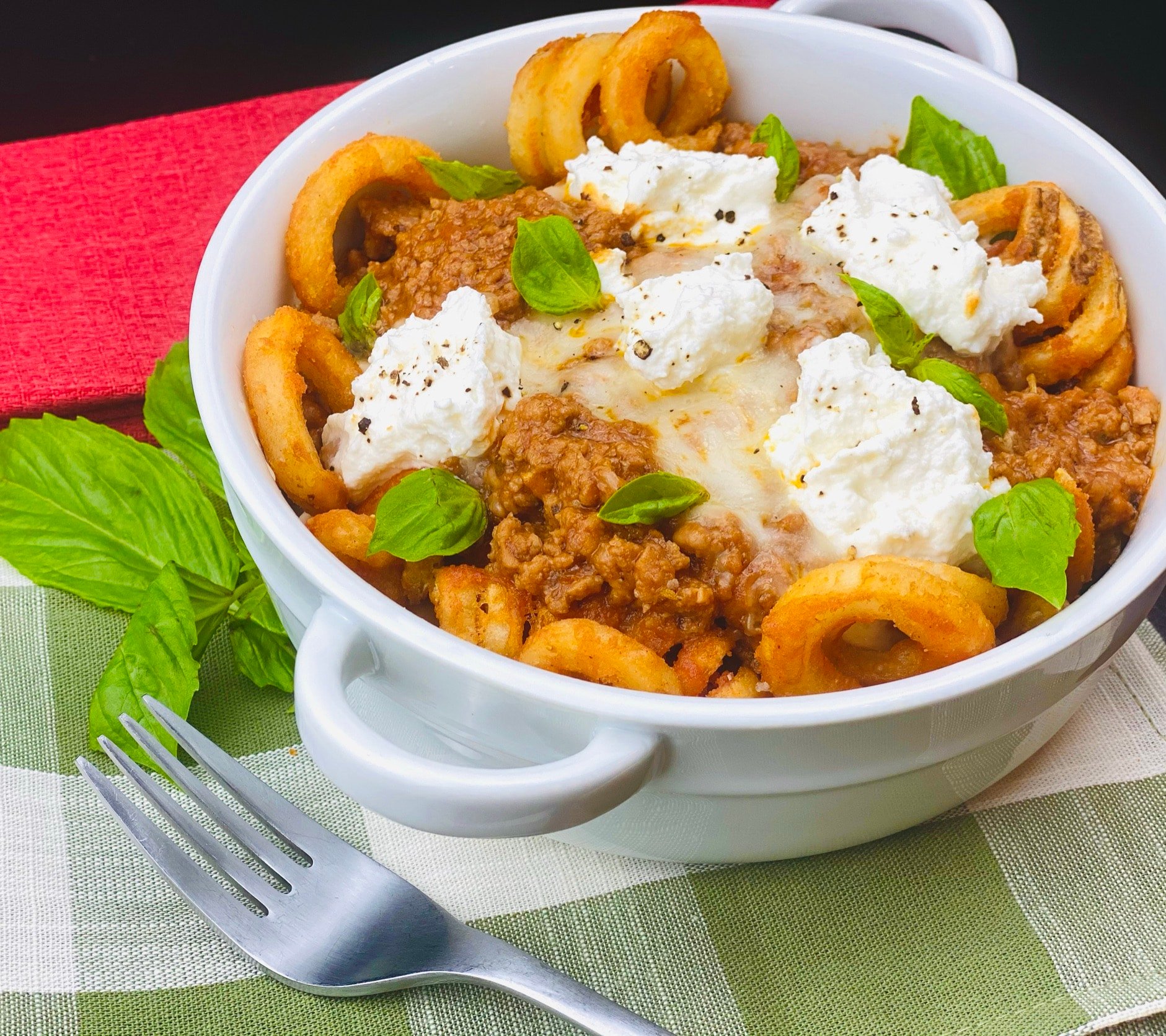 3. Place the dish into an oven with the broil set on high. Cook the fries until the cheese is melted and bubbling (about 90 seconds).