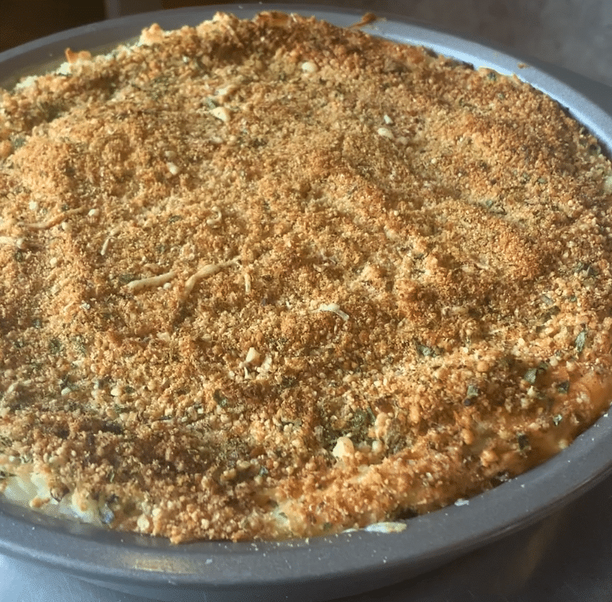 10. Top the potatoes with the breadcrumb mixture. Bake for about 45 minutes, until golden and crispy on top. The assembled unbaked casserole can be refrigerated overnight.