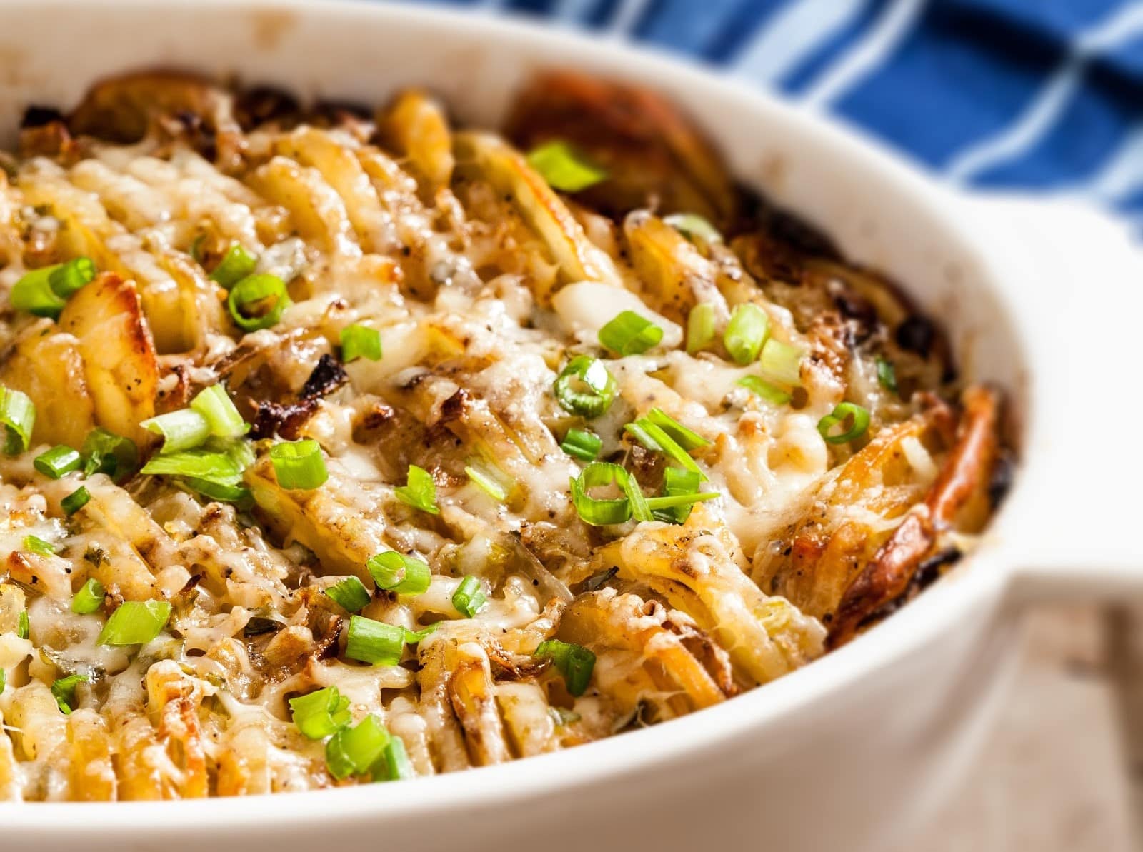 A stunning dish, crispy on top soft and cheesy on the inside, this hasselback potato casserole is a side dish stunner.