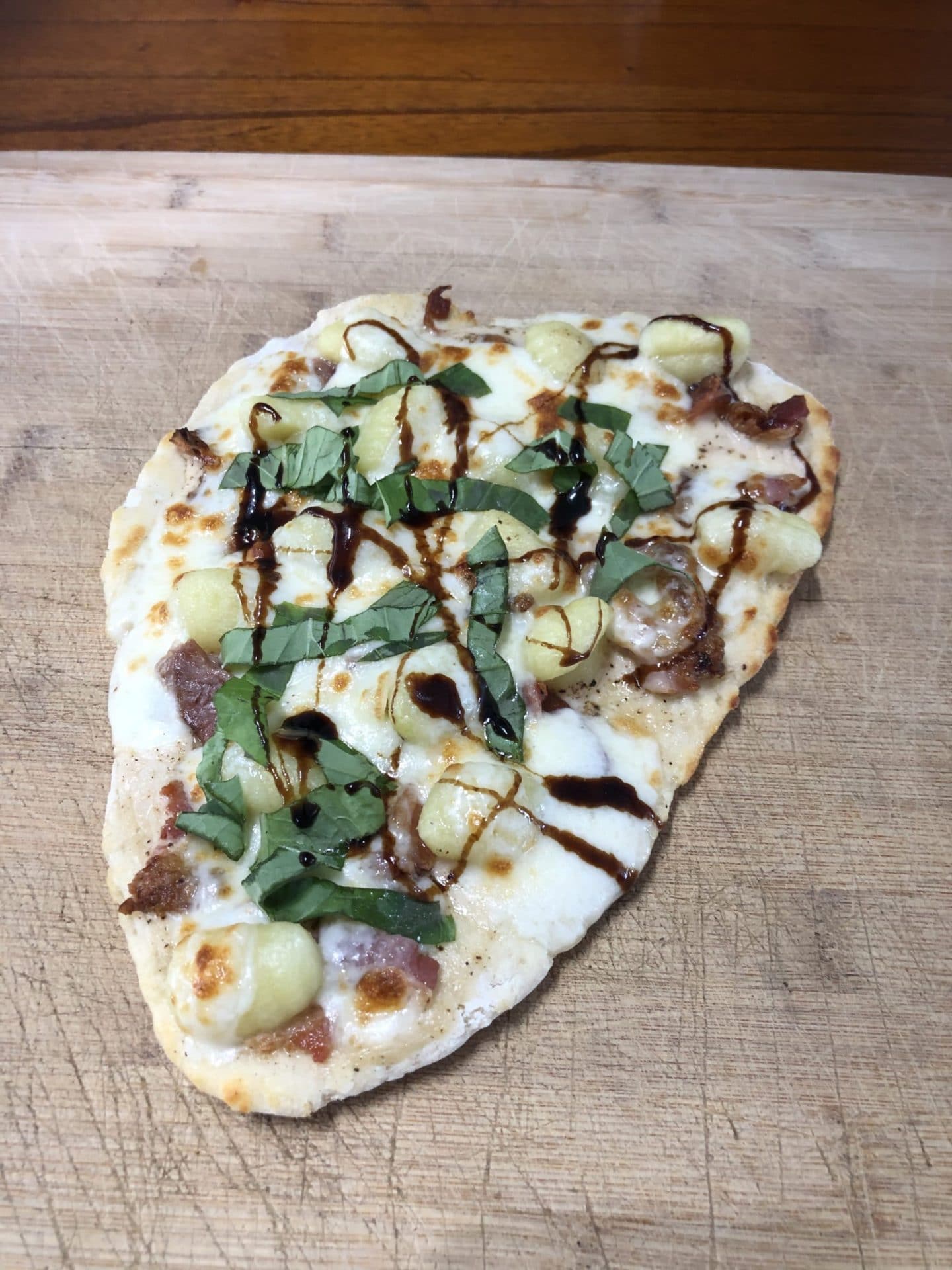 7. To finish sprinkle the pizza with the fresh basil and drizzle with balsamic glaze. Enjoy!