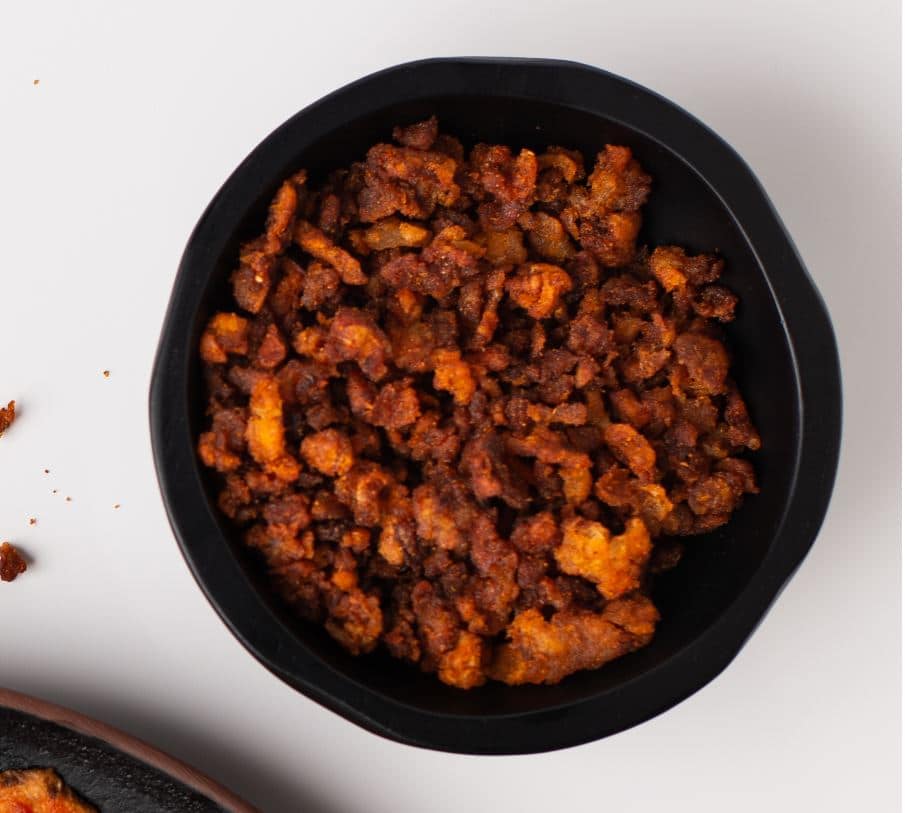 3. To make chorizo, toss a generous amount of the spice blend with the shredded tater tots and a drizzle of canola oil. Massage the spices well into the crumbly potato.