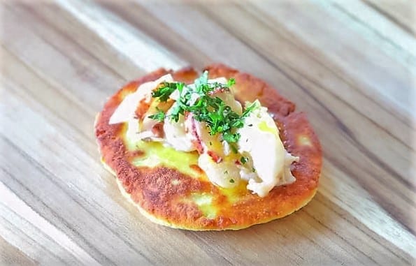 7. Roll it up Put lobster meat on a flatbread (I used claws), drizzle with