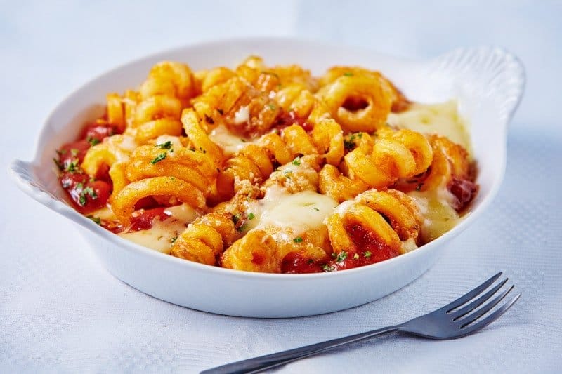 3. Bake at 338ºF for 30 minutes or until fries and cheese begin to brown.