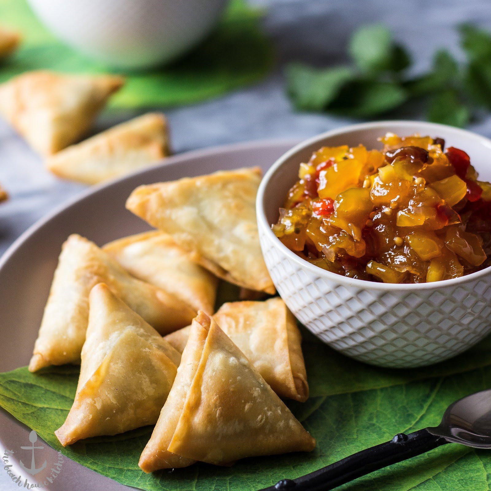 Nutritionals are based on 1/16th of the recipe (2 samosas with 1 Tablespoon mango chutney)