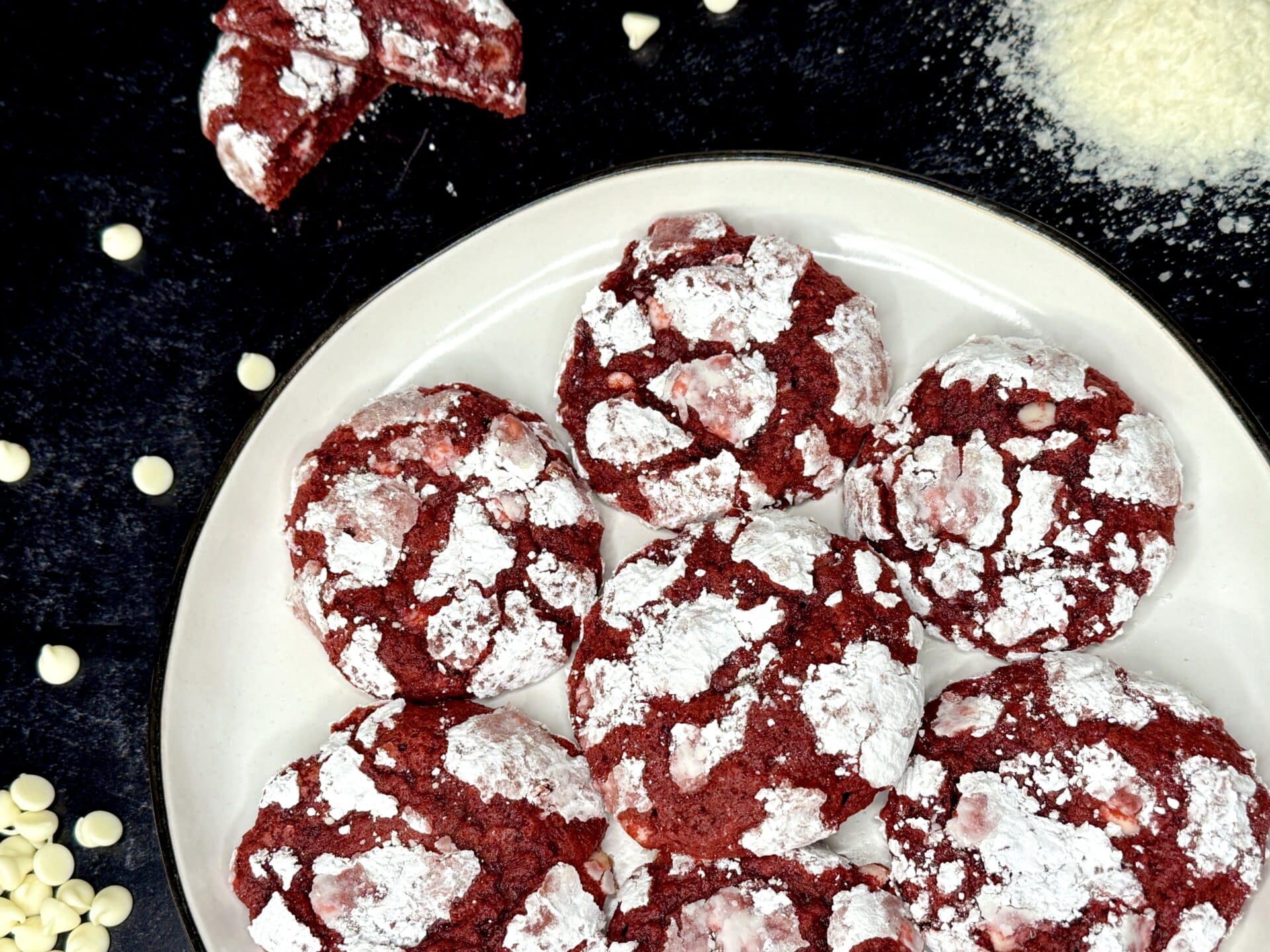Red Velvet Potato Crinkle Cookies with White Chocolate