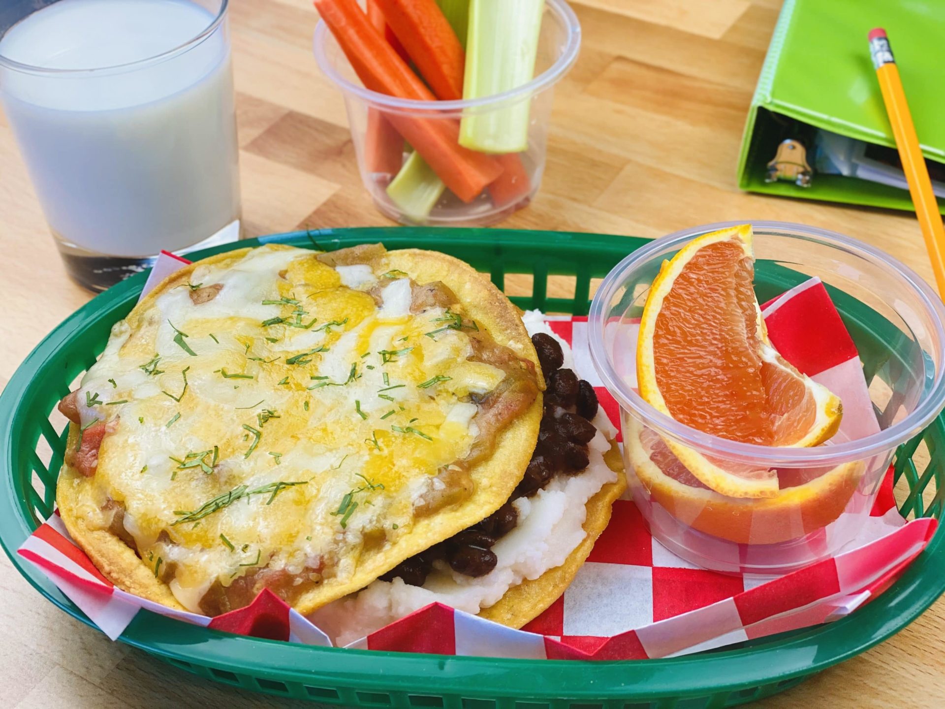 5. When ready to prepare, spoon 1-1/2 ounces of green chili onto half of the tostadas, top with 1-1/2 ounces of cheese, and place in the oven for 3-5 minutes or until the cheese is bubbling and melted.