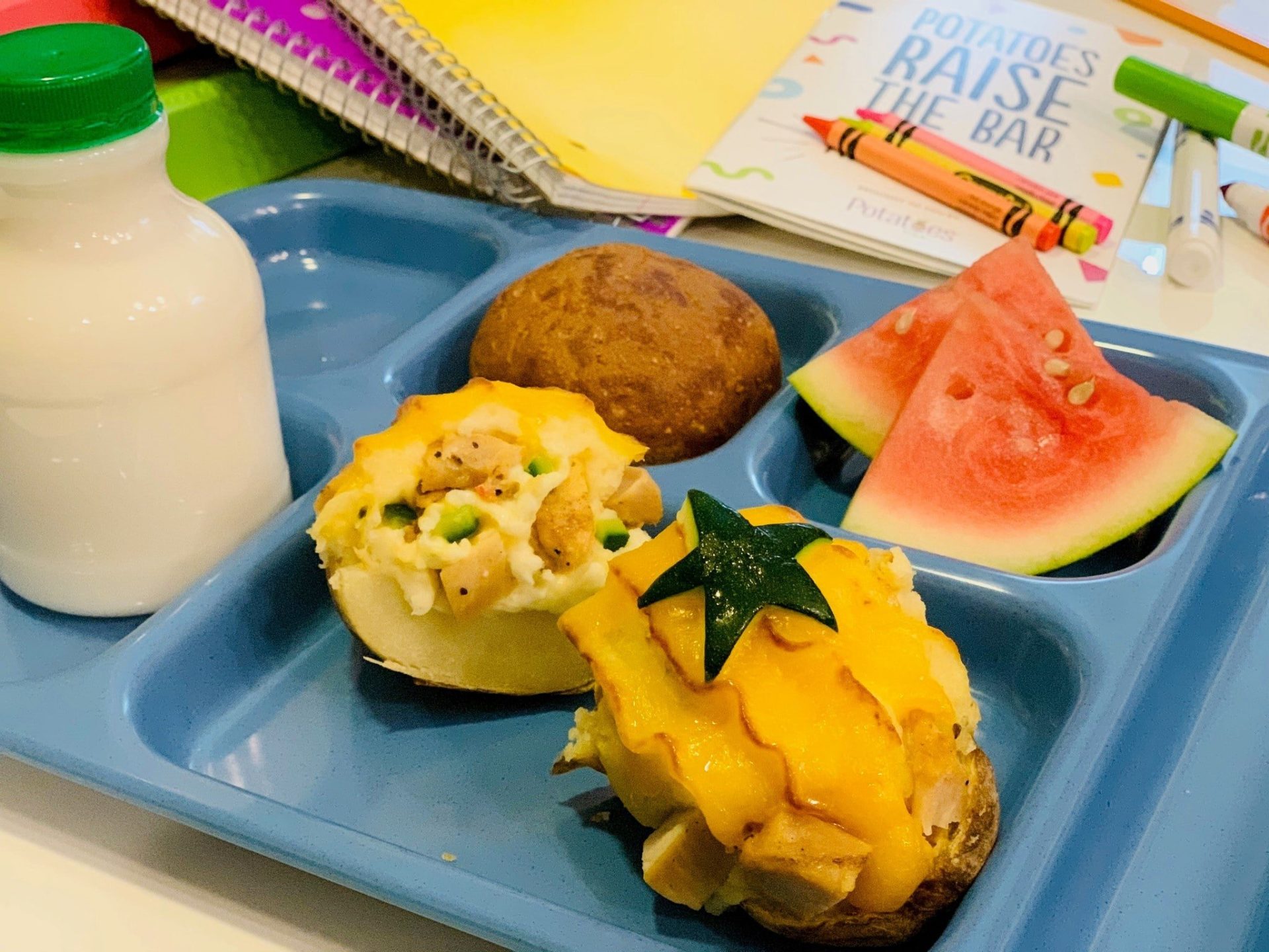 - Place the potatoes into the oven and bake for 25 minutes or until the internal temperature reaches 165 F and the cheese is melted and golden. Hold at 140 F for no longer than 4 hours.
