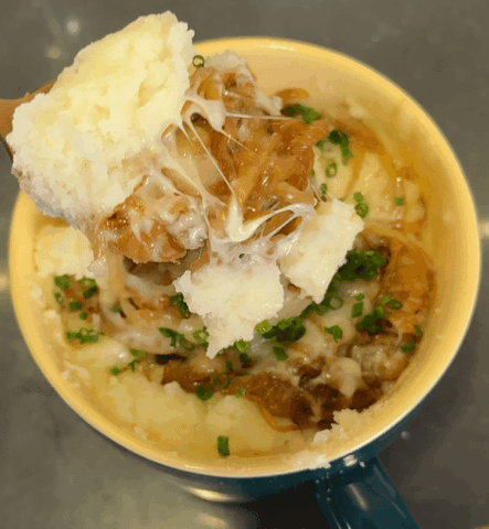 Stir the caramelized onions into your prepared instant mashed potatoes along with a handful of shredded Gruyère or Swiss cheese. Microwave briefly to melt the cheese, then finish with a sprinkle of fresh thyme or parsley. This French Onion Mashed Potato Mug is rich, savory, and incredibly comforting, perfect for a simple yet elevated meal.