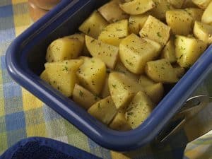 Why it works: The microwave energy acts directly on the olive oil and raises its temperature to the heat levels found in a conventional oven. This causes the potatoes to slightly brown in the microwave oven. If using plastic wrap, poke one small hole in the cover, as a moist contained cooking environment is created, yet the pressure is lessened.